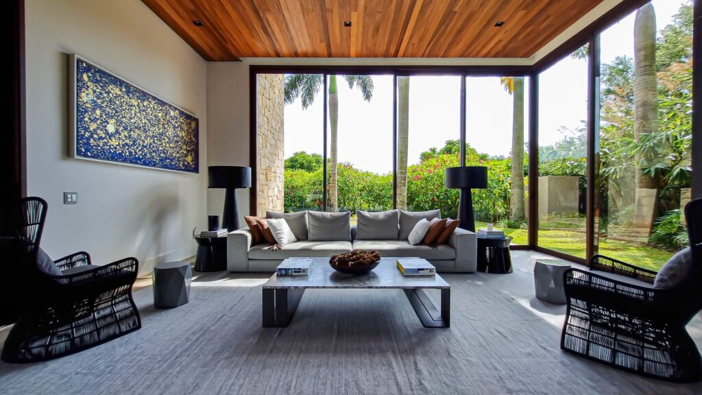 Ao contrário das residências urbanas, onde concreto e aço predominam, as casas de campo de luxo priorizam materiais como madeira, pedra, cimento queimado, tecidos naturais e tons terrosos. Essa materialidade dialoga com o entorno, reforçando a sensação de pertencimento à paisagem. Além do apelo estético, há uma valorização crescente de práticas sustentáveis que complementam a sofisticação desses projetos. Coberturas verdes, ventilação cruzada, iluminação natural abundante, captação de água da chuva e o uso consciente de materiais como madeira de reflorestamento revelam um compromisso com a natureza que vai além da forma — é também função e propósito.