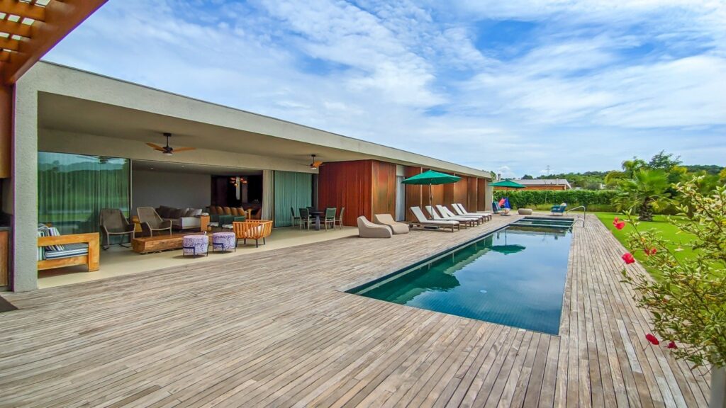 A Villa Fasano do Lago, projetada por Marcio Kogan, está situada à beira de um lago na Fazenda Boa Vista, combinando de forma impecável sofisticação e integração com a natureza. Com espaços amplos e bem iluminados, o projeto permite que o ambiente externo se torne parte da experiência interna, criando uma conexão orgânica entre arquitetura e paisagem. As casas ainda contam com áreas de lazer e convivência cuidadosamente planejadas, ideais para momentos de relaxamento ou para receber amigos e familiares com conforto e elegância.